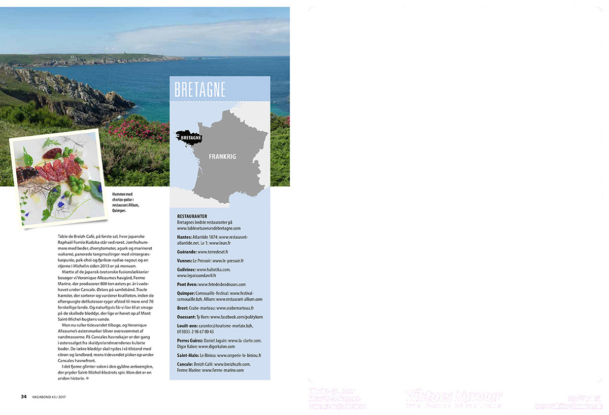 Food & gastronomy Brittany; in Vagabond (DK) 03.2017